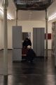 'PORTABLE MUSEUM' by Niek Kemps material: Wood, paint, light, a large number of editions size: 204 x 84 x 235 cm remarks: a wooden cupboard that is usually closed. You have to ask a guardian before it will be opened for you. Inside there's a largecollection of small works and editions. These works where made through time; parallel to the bigger works. exhibited: Without Any Warning, White-Out Studio, Knokke, 2004